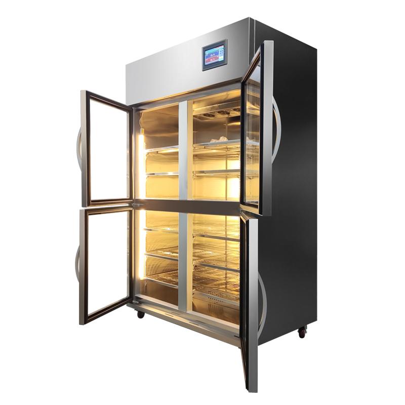 4.柜門:采用大面積雙層真空鋼化玻璃組成,確保柜體牢固。柜門裝有永磁密封膠條,確保柜內的密閉性;
